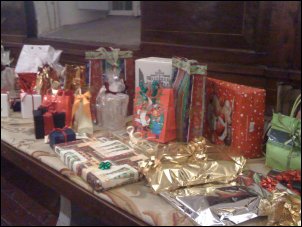 Babbo Natale che ha portato tanti regali ai numerosi bambini presenti. |